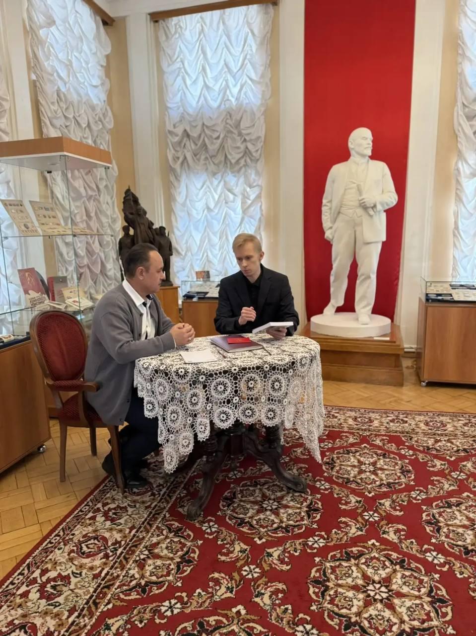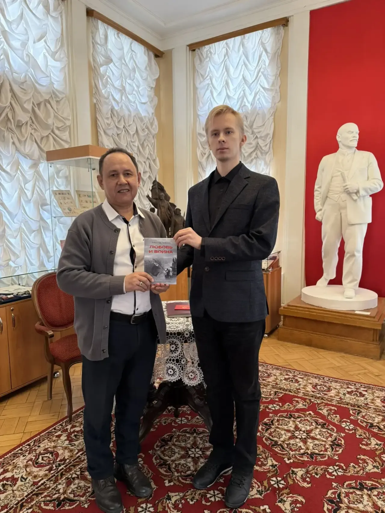 В рамках данной встречи директор "Дом-музея им. В. И. Ленина" Халил Габбасович затронул тему Великой Отечественной войны и роль патриотического воспитания нашей молодежи. Между нами прошла дискуссия о воспитании населения патриотическими книгами, а в первую очередь был сделан акцент на мою книгу "Любовь и война", которая написана впервые в истории лунной онегинской строфой. Мы очень емко обсудили историческую роль наших предков, которые являлись участниками-героями Великой Отечественной войны. Между нами завязались рассуждения о новых подходах к написанию поэтических книг, о новаторстве в творческой деятельности и о месте поэзии в международной литературе. Халил Габбасович поблагодарил меня за дар, предоставленный музею, за мое высокое мастерство и талант и отметил меня сегодня как почетного гостя.